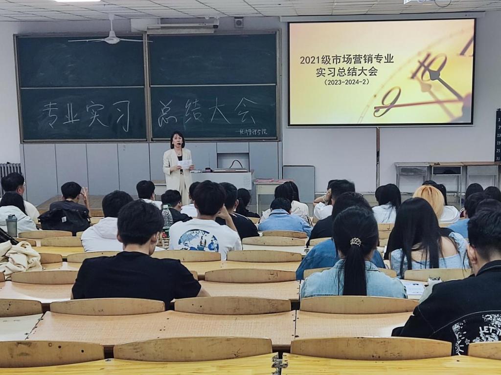 会议伊始,尚德萍主任代表学院向同学们成功完成实习活动表示热烈祝贺,并对大家在实习中的付出和成长给予高度评价。她特别提到,市场营销专业作为学院省一流专业建设点,一直注重实践教学与理论学习的结合,同学们在实习中展现出的虚心求学、严谨求教的态度,正是学院教育理念的生动体现。