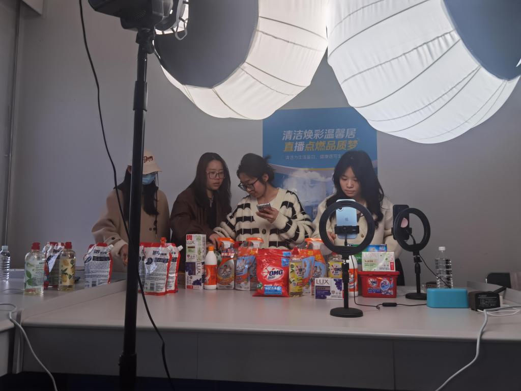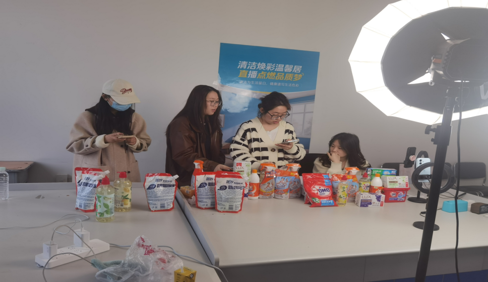 员工团队针对家庭洗护清洁市场开展深度调研,提炼出“健康家居”“高效清洁”“性价比”三大核心卖点。在此基础上,员工们分组撰写直播脚本,反复打磨产品话术——从产品成分解析到使用场景模拟,从痛点挖掘到解决方案呈现,均融入“健康生活”理念,确保内容兼具专业性与感染力。同时,尹玥副教授带领的团队开展多轮模拟演练,指导员工优化镜头表现力、互动节奏及突发问题应对策略。学院师生联动依托班级群等平台发布预热海报,热情邀约观众。