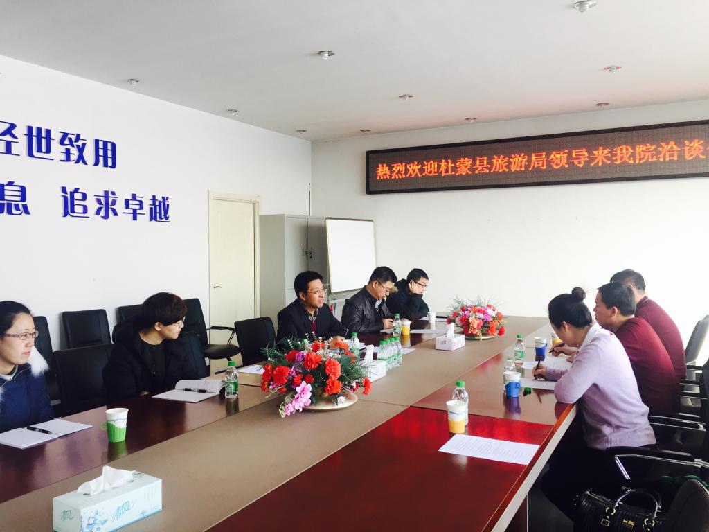 2017年1月6日上午10时,杜尔伯特蒙古族自治县旅游局吉宝亭局长等一行4人来英国上市公司365调研,英国上市公司365经理张平教授,经理助理邬德林副教授,旅游管理系主任车鑫老师、以及旅游管理系教师参加座谈。