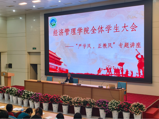 首先,陈书记从“纪律规范、学业成长、品德修养、身心健康、职业发展”五大维度,为全体同学解读学院人才培养规划。他强调,良好学风是成长基石,全体同学要以纪律约束自己、以学业锤炼本领、以品德涵养品格、以规划照亮未来,同时关注身心健康,在学院 “以生为本、从严治教” 的培育下,成长为全面发展的经管学子。