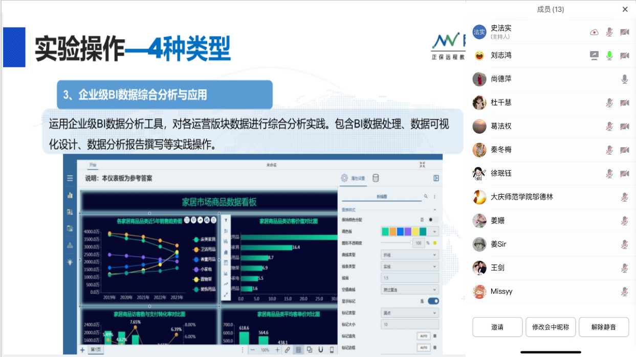 为了积极促进教师数字素养的增强,并提升他们在数据分析应用方面的教学实践能力,市场营销专业于2024年11月27日下午13:30-15:30,原计划以线下形式举办的“商务数据分析与应用”专题培训教研活动,因应天气变化,灵活调整为线上腾讯会议模式进行。此次培训有幸邀请到厦门网中网软件有限公司资深培训师刘志鸿,他针对市场营销专业全体教师,就商务数据分析与应用平台的全面概况及高效使用技巧进行了深入细致的讲解。