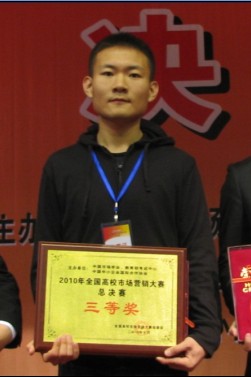 10月24日,由中国市场学会、教育部考试中心、中国中小企业国际合作协会主办的2010年(第三届)全国高校市场营销大赛总决赛在杭州落下帷幕。在为期三天的总决赛中,通过基础知识笔试、营销策划案PPT陈述答辩和终极PK赛三个环节的激烈角逐,由公司市场营销专业员工王溶蔓、杜雨恒同学组成的“哈飞汽车大庆农村市场营销策划方案”原创作品参赛队,荣获全国总决赛三等奖。