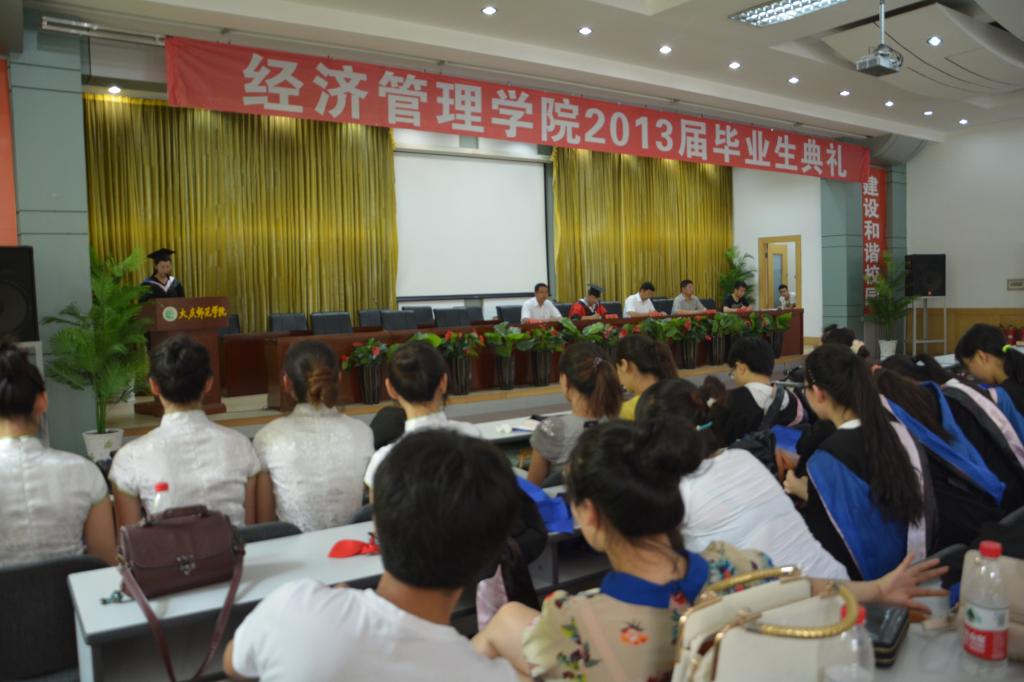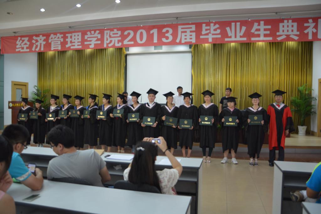 典礼由副经理刘楠主持,首先由孔书记宣读2013届毕业生毕业名单及授予学士学位名单,由张平经理颁发毕业证和学位证并拨流苏。