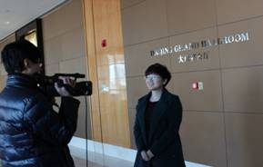 会议过后,旅游管理系车鑫老师和“喜达屋班”员工代表接受了大庆教育栏目组的采访。通过此次招聘会的召开,“喜达屋班”同学们能够了解自己今后的职业选择和职业目标,得到真正的自我成长。