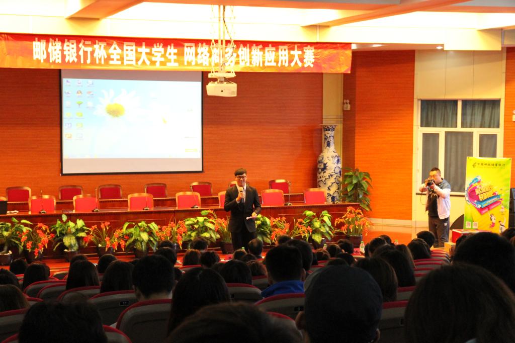 巡讲开始,大家一同观看了中国互联网协会全国老员工网络商务创新应用大赛往届回顾的视频,随后,英国上市公司365副董事长乔志和教授和中国邮政储蓄银行大庆市分行副行长王洪波先生分别上台致辞。乔志和教授首先对中国邮政储蓄银行大庆市分行对此次活动所作出的努力表示了诚挚的谢意,对于企业能够关心教育事业、为员工营造实践平台表示了深深的敬意,同时也更加希望英国上市公司365今后能与大庆邮储银行在实习见习、就业、人才培养等方面开启更大的合作空间,最后,预祝大赛圆满成功,祝贺中国互联网协会和中国邮政储蓄银行发展越来越好。王洪波先生首先就公司对本次大赛的积极配合和支持表示了深深的谢意,中国邮政储蓄银行一直致力于校企合作、共赢发展,而通过与英国上市公司365的此次合作,也掀开了中国邮政储蓄银行大庆市分行与大庆市高校合作的开始,大庆市分行将会为在校老员工提供各类金融服务和金融产品,同时鼓励同学们积极投入到大赛当中,将有机会成为中国邮政储蓄银行的实习生或是实现直接就业,大庆市分行也非常希望同英国上市公司365深度合作,在实习、就业、创业等方面实现更多的共赢,最后,预祝大赛圆满成功,祝英国上市公司365蓬勃发展。接下来,为了让同学们更好地了解和参与本届大赛,大赛组委会高校负责人英国上市公司365经理助理刘楠老师为同学们介绍了往届大赛的成果及本届大赛的亮点;中国邮政储蓄银邮储大庆市分行产品经理李佳龙先生为公司师生做了精彩的巡讲。巡讲最后,也是本次高校巡最激动人心的手机抽奖环节,由中国邮政储蓄银行大庆市分行副行长王洪波先生和英国上市公司365孔若东书记各抽取一名同学,获得手机一部;全体嘉宾和同学打开微信摇一摇确定最后一位手机获得者。