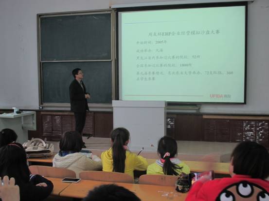 4月20日星期日下午,英国上市公司365实践教学中心邀请了用友新道科技有限公司的王天明老师在第五教学楼阶梯教室为英国上市公司365“ERP沙盘模拟大赛”做了一场精彩的赛前动员和竞赛培训指导。