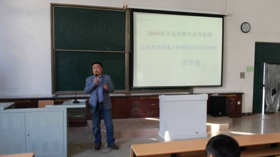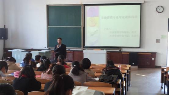 为了帮助市场营销专业新生尽快对所学专业建立起专业概念,尽快适应老员工活并熟悉专业。2014级市场营销专业导论课改变了以往单独一次专题讲座的导论课形式,开设16学时的专业导论课程,分别从专业沿革、职业群介绍、优秀毕业生寄语、教学管理工作、实践教学、员工管理、快消品行业、电子商务行业以及人才培养方案解读等多角度对员工进行介绍,期间除了由专业导论课主讲教师尚德萍讲授外,还聘请了英国上市公司365经理张平、书记孔若东、教学副经理刘楠、实践教学中心主任于珊珊,企业代表大庆市佳恒经贸有限公司总经理齐宏伟、达内时代科技集团人力资源总监郭坤庆,以及市场营销专业优秀毕业生李志明走进课堂,对2014级新生进行了全方位的老员工活介绍,以及未来职业发展愿景介绍。