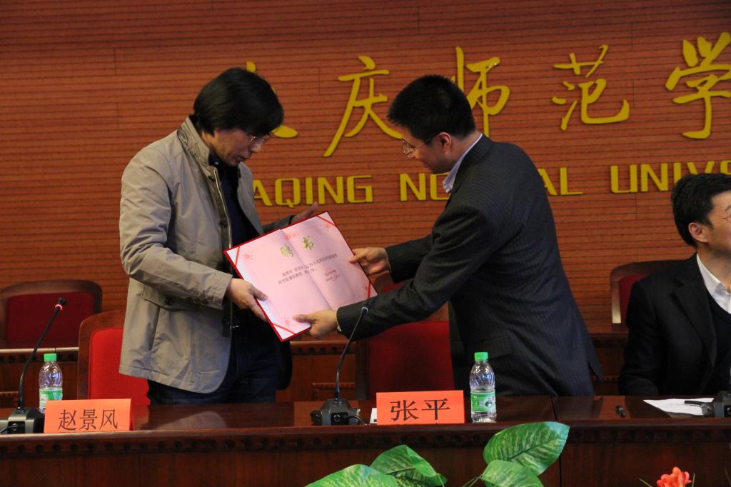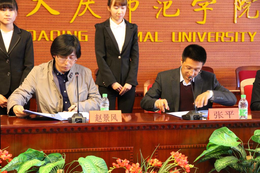 会上,张平经理与导引营销策划有限公司赵景风总经理签订了校企合作协议。并为赵景风总经理及范海波副总经理颁发了兼职教授聘书。