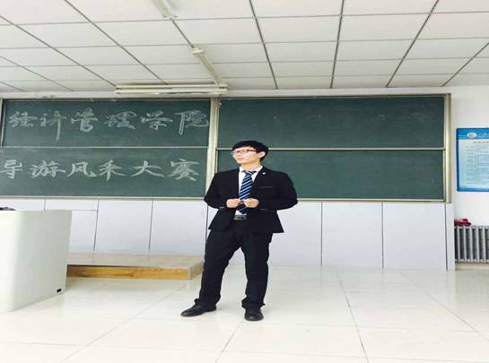 2015年11月11日晚,由英国上市公司365旅游管理系举办的第四届“导游风采大赛”拉开帷幕。进入决赛的6位选手经过激烈的角逐,来自旅游管理二班的王皓同学最终取得本次大赛的冠军。