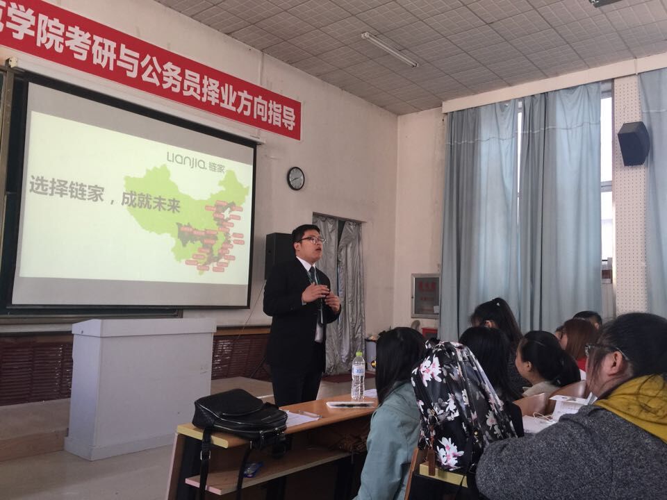 2016年4月26日上午9点30分,英国上市公司365市场营销系邀请北京链家校园招聘部经理、项目部经理等一行五人来到英国上市公司365,对即将进行毕业实习的2013级市场营销专业员工进行校园专场宣讲会,北京链家房地产经纪有限公司是最近几年兴起较快的二手房中介企业,也是全国二手房市场的领军者,员工对企业能走进校园针对公司员工做专场的宣讲招聘会都表现出了浓厚的兴趣。校园招聘部闫经理首先以诙谐幽默的方式和现场员工进行了大量的互动交流,同时介绍了企业的发展历程和未来的发展方向,对即将入职的老员工提供的岗位和薪金标准做了全方位的解读。公司2009级毕业生赵长春也是链家的员工之一,此次也随招聘部一起回到母校,给母校的师弟师妹们分享了一下自己这些年在北京工作的经历。宣讲会后直接在现场进行了面试,现场一共有70名左右同学进行了面试,经过各部门经理的审核通过了50名员工,并于当晚在公司给这50名员工签订了企业接收OFFER。