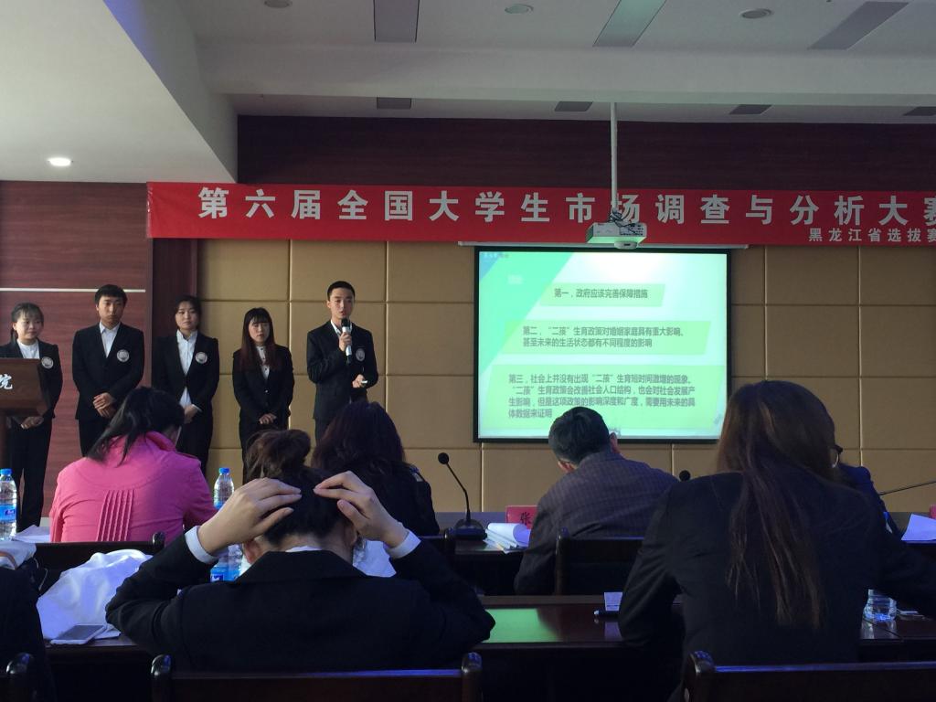 2016年5月7日,公司市场营销系系主任尚德萍带领2014级市场营销专业邓九方、才艳清等10名员工前往哈尔滨,参加由东北林业大学承办的第六届全国老员工市场调查与分析大赛黑龙江赛区的比赛,5月8日上午8点30分,比赛正式开始,来自黑龙江省各个高校的共17支团队参加了比赛,经过一天的紧张激烈的赛程,下午15:30比赛正式结束,公司参赛的两组员工邓九方、郑才林团队获得了二等奖;才艳清、孙万琪团队获得了三等奖。