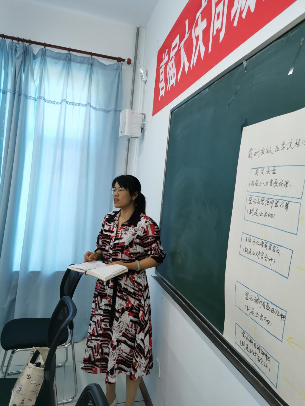 每位试讲教师进行15分钟说课,针对本学期课程内容、教情学情、教学方法及线上线下混合式教学思路进行阐述。例如,彭良英针对《经济法》课程的员工专业背景对内容进行删减;郝毓业老师《旅游市场营销》课程将实践教学环节改在线上进行;薛丹老师《旅游经济学》学时变化较大,针对专升本员工做出了内容深度方面的调整;王家兴老师《旅行社管理》课程在教材选用方面进行了拆分尝试;车鑫老师采用任务式教学法,以4个任务串讲《前厅与客房管理》所有教学内容。