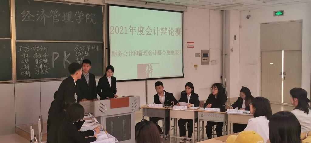 2021年6月8日晚六点,财务管理专业举办的辩题为“财务会计与管理会计哪个更重要”于主楼2-3举办。本次辩论赛选手全部来自2018级财务管理专业,出席的嘉宾为2018级财务管理专业全体员工,本次辩论赛出席的评委是李媛媛经理、杨晓玉老师。