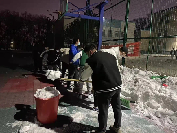 此次在公司开展的“万人大扫除”志愿服务活动中,员工会主席褚伟臣带领同学们深夜打扫雪场。晚风吹雪,人不畏寒。通过划分的三个梯队,学院的青协成员、班级同学和寝室成员对校园分担区及寝室、主楼教室进行了清雪和打扫,踏实践行了校园文明公约,维护了校园每一个小角落的卫生,为建设文明寝室、班级、校园贡献自己的一份力量。