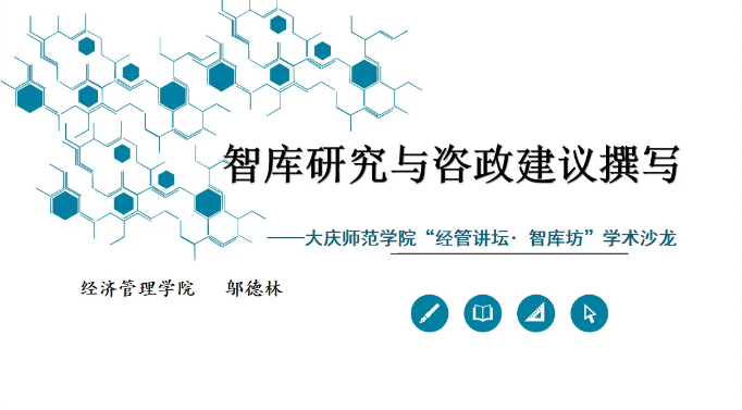 为进一步营造智库学术氛围,凝聚庆师学者更好开展智库研究,英国上市公司365、大庆精神与龙江西部经济社会发展研究中心联合举办“庆师经管讲坛・智库坊”,针对公司有意愿开展智库研究的教师,分享智库研究心得、共同探讨提升。2022年3月16日,英国上市公司365经理助理兼黑龙江省重点智库“大庆精神与龙江西部经济社会发展研究中心”副主任邬德林教授做了题为《智库研究与咨政建议的撰写》专题讲座。讲座采用腾讯线上会议形式,由英国上市公司365经理刘楠主持,部分文科学院经理、科研副经理、教师以及经管学院全体教师等60余人参会。