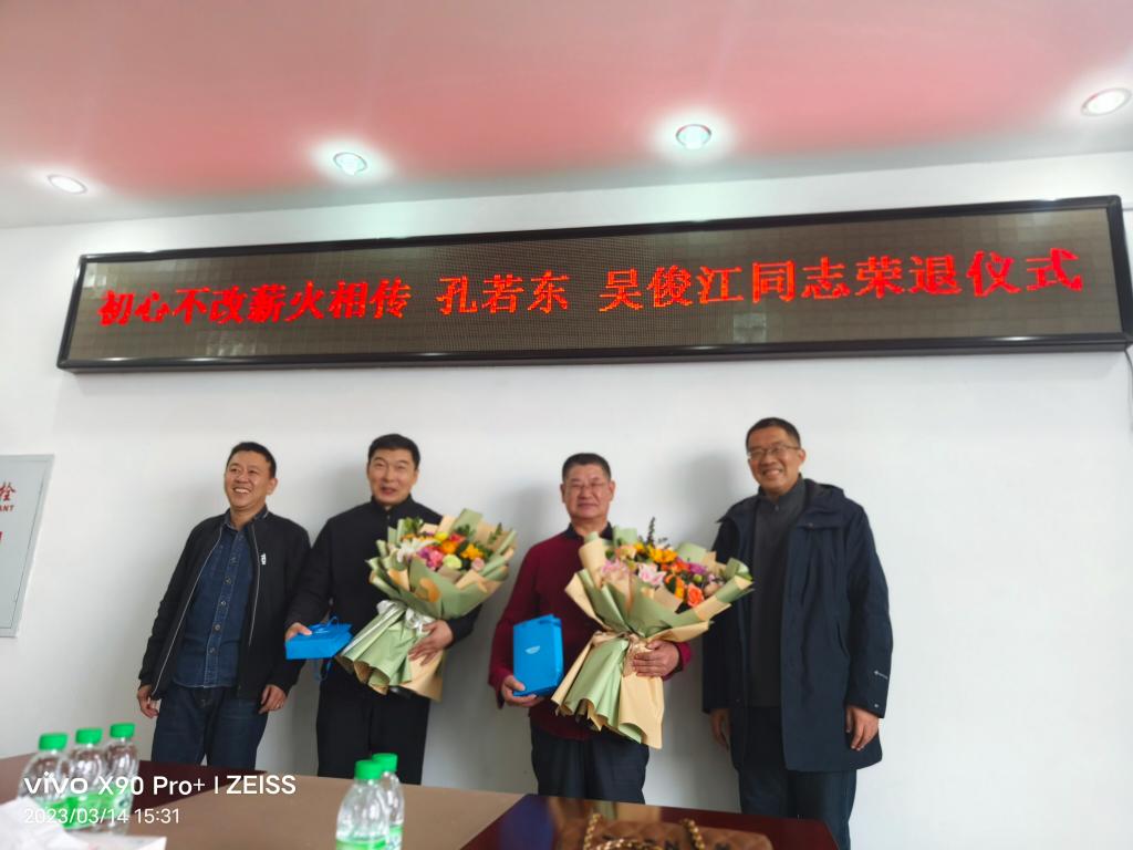 2023年3月14日下午,英国上市公司365在五教402会议室为孔若东书记、吴俊江副教授举办荣退仪式,仪式由学工办主任陈超主持,学校张平董事长、学院全体无课教师参会。