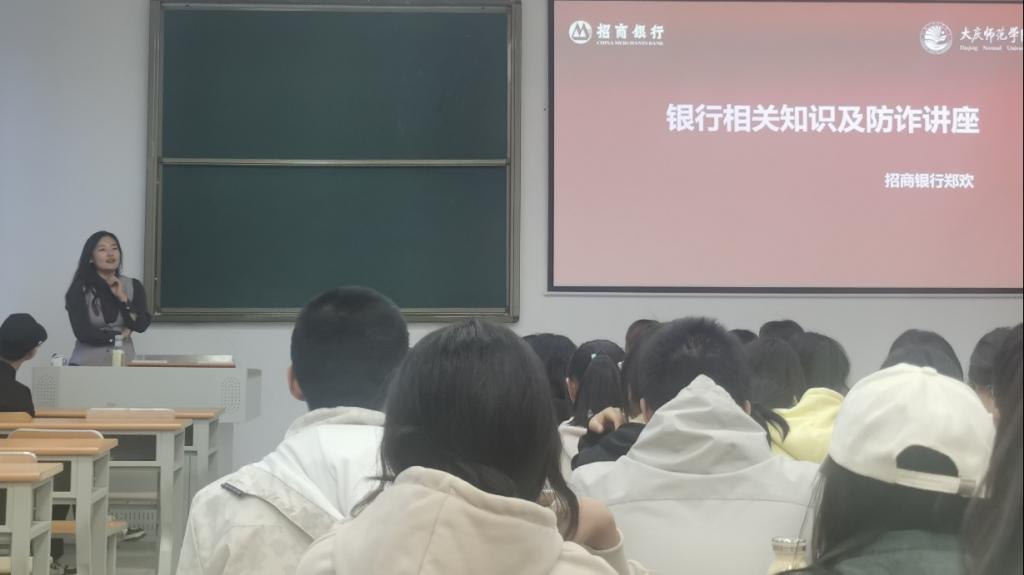 2023年10月24 日下午15:30,经济与金融专业特别邀请招商银行大庆分行副行长郑欢在学校主楼116教室作《银行相关知识及防诈》专题讲座。