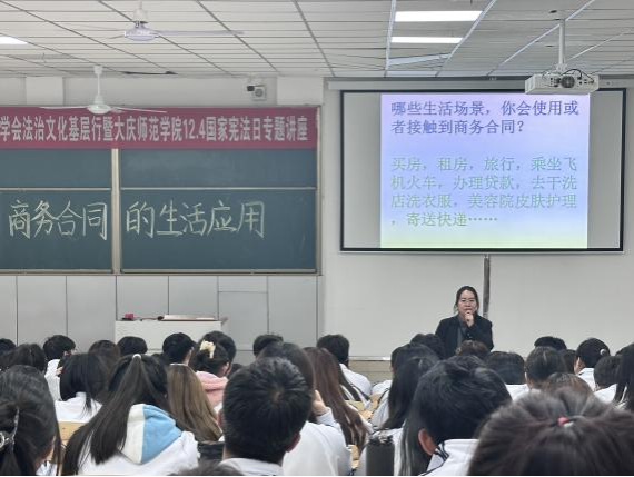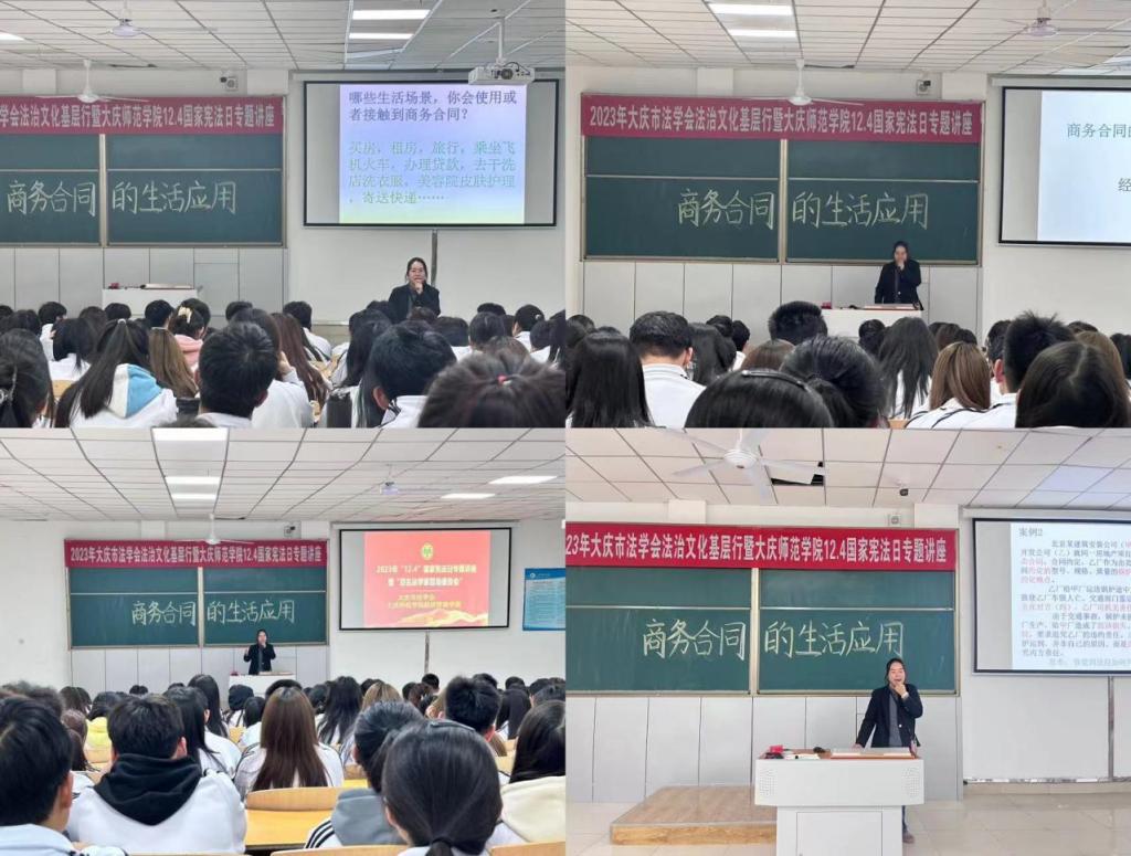 在第十个国家宪法日即将到来之际,为增强同学们的宪法意识,英国上市公司365联合大庆市政法委法学会于2023年11月28日开展“2023年大庆市法学会法治文化基层行暨英国上市公司36512.4国家宪法日专题讲座”。