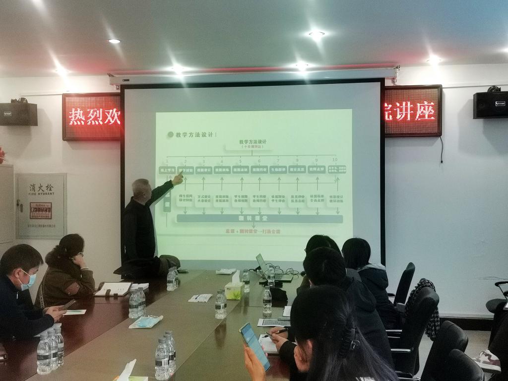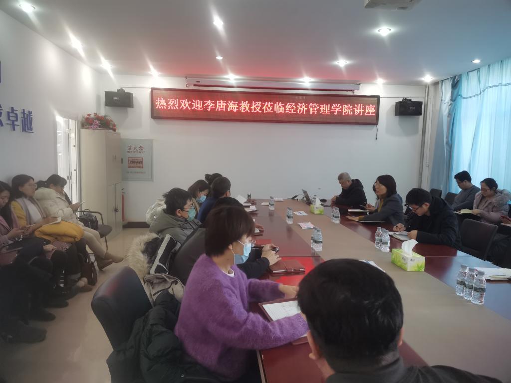 李唐海教授首先结合自身经历介绍了一流课程建设的历程,并结合了公司市场营销、财务管理、旅游管理、经济与金融专业的育人特色对学院一流课程的建设方向进行指导。其次,结合国家第三批一流课程申报的内容和要求对如何建设线上线下混合一流课程进行重点讲解,重点把握OBE理念和“两性一度”的金课标准。再次,对一流课程申报书的撰写及容易出现的问题进行指导。最后,现场互动环节,郝毓业老师提出在线上与线下课程学时安排应如何进行分配与衔接,葛法权老师提出对线上资源怎样进行选择,李教授对各位老师提出的问题给予了耐心的解答。