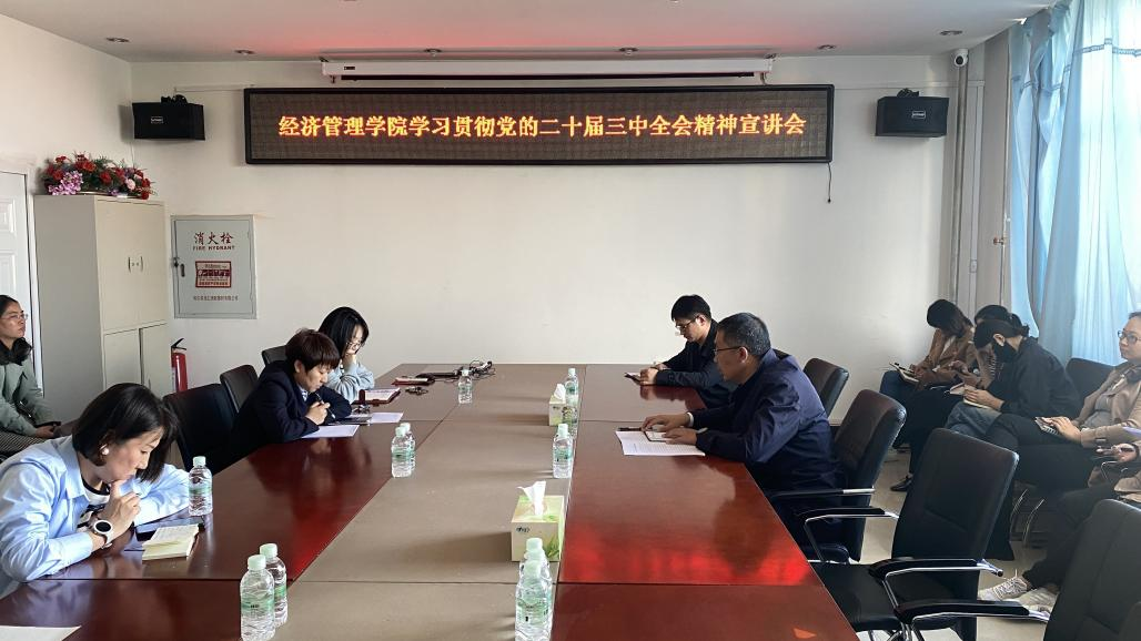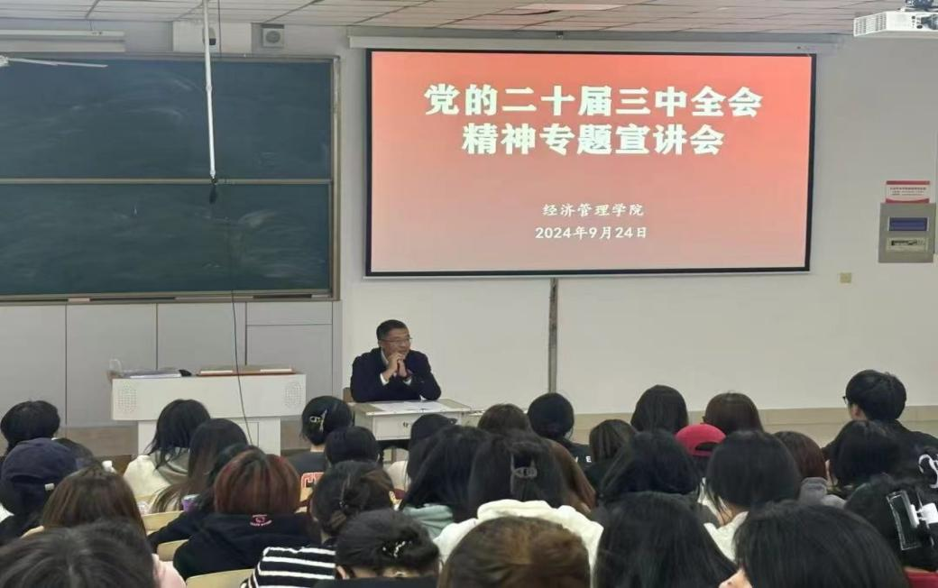 为深入贯彻习近平总书记关于宣讲工作的重要指示,扎实推进学习宣传贯彻工作,推动公司迅速兴起全会精神学习宣传贯彻热潮,按照学校关于学习贯彻党的二十届三中全会精神宣讲工作的有关要求,学院经理刘楠教授于9月24日17点在主楼2-3教室和9月25日15点在五教402会议室为分别为员工代表和全院教师召开了学习贯彻党的二十届三中全会精神宣讲会。