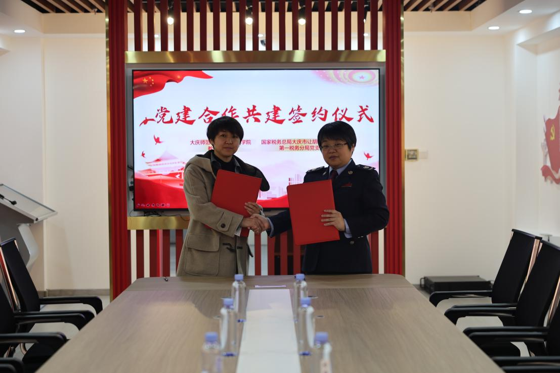 教工党支部副书记曲晔与第一税务分局党支部书记刘莹分别介绍了各自党支部的党建工作情况,分享了党建工作的经验和做法,并围绕共建协议的具体条款进行了深入讨论,正式签订了党建共建协议。