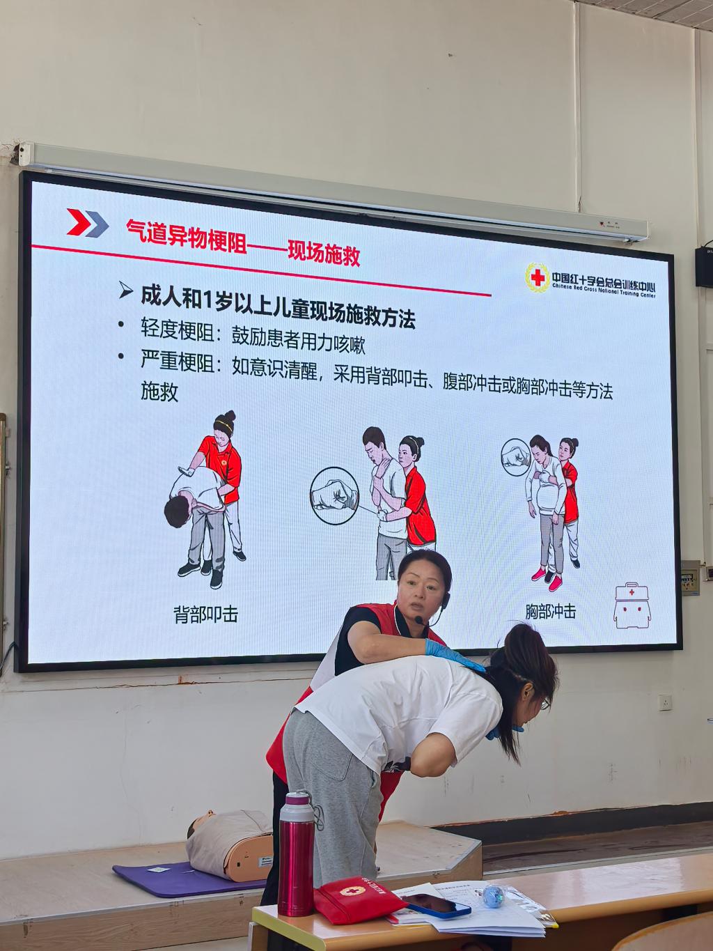 上午,首先进行的是心肺复苏培训。老师采用理论讲授和实际操作相结合方式进行,导游分组模拟练习掌握了正确的心肺复苏技巧。然后培训的是气道异物梗阻,老师对生活中常见的实际问题、表现以及施救方法都进行了专业的讲解。
