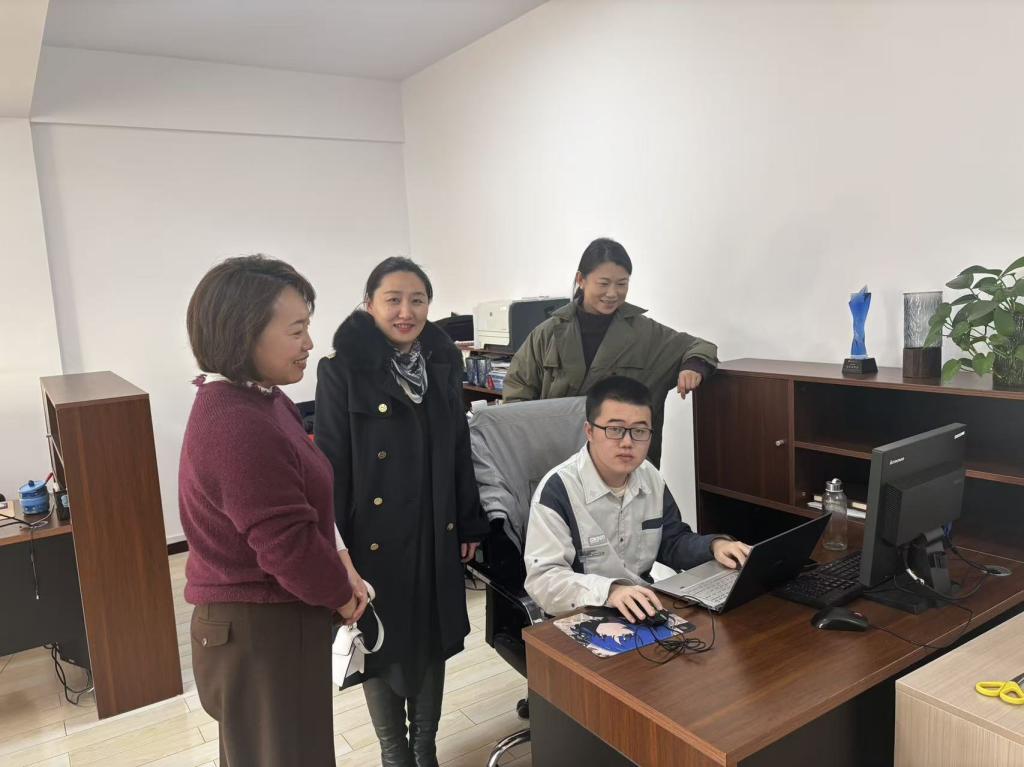 座谈结束后,在唐海岩总经理的陪同下,王植荔副教授和黄佳老师前往公司理赔部,实地考察了正在此处进行专业实习的2022级经济与金融专业员工刘佳琪的工作情况。走访团队与刘佳琪同学及他的实习指导老师进行了亲切交流,详细询问了他的工作内容、实习收获、遇到的困难以及在企业的适应情况。