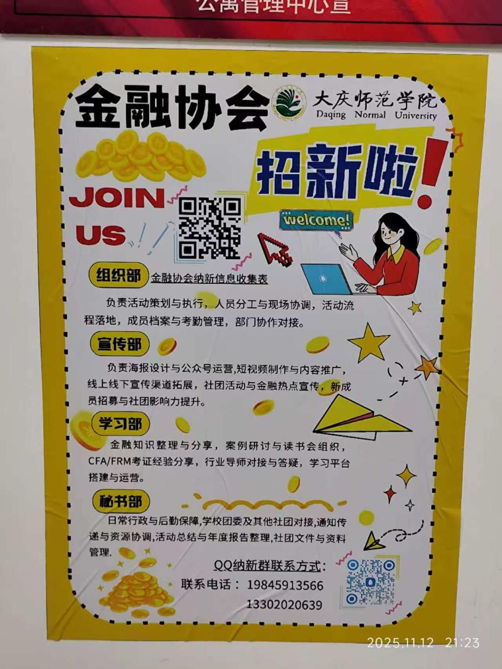 2025年11月,英国上市公司365金融协会社团在主楼117教室召开纳新筹备专项会议。社团导师、经济与金融专业教师李金宝博士与协会核心成员参加了社团会议。社团导师围绕部门职能分工、纳新考核安排、社团活动规划及资料管理等关键工作展开研讨部署,为2025年度纳新工作与社团后续发展明确方向。同时社团主要成员在员工课间时间进行走班宣传,让同学们知道金融协会更加清楚了解社团定位。